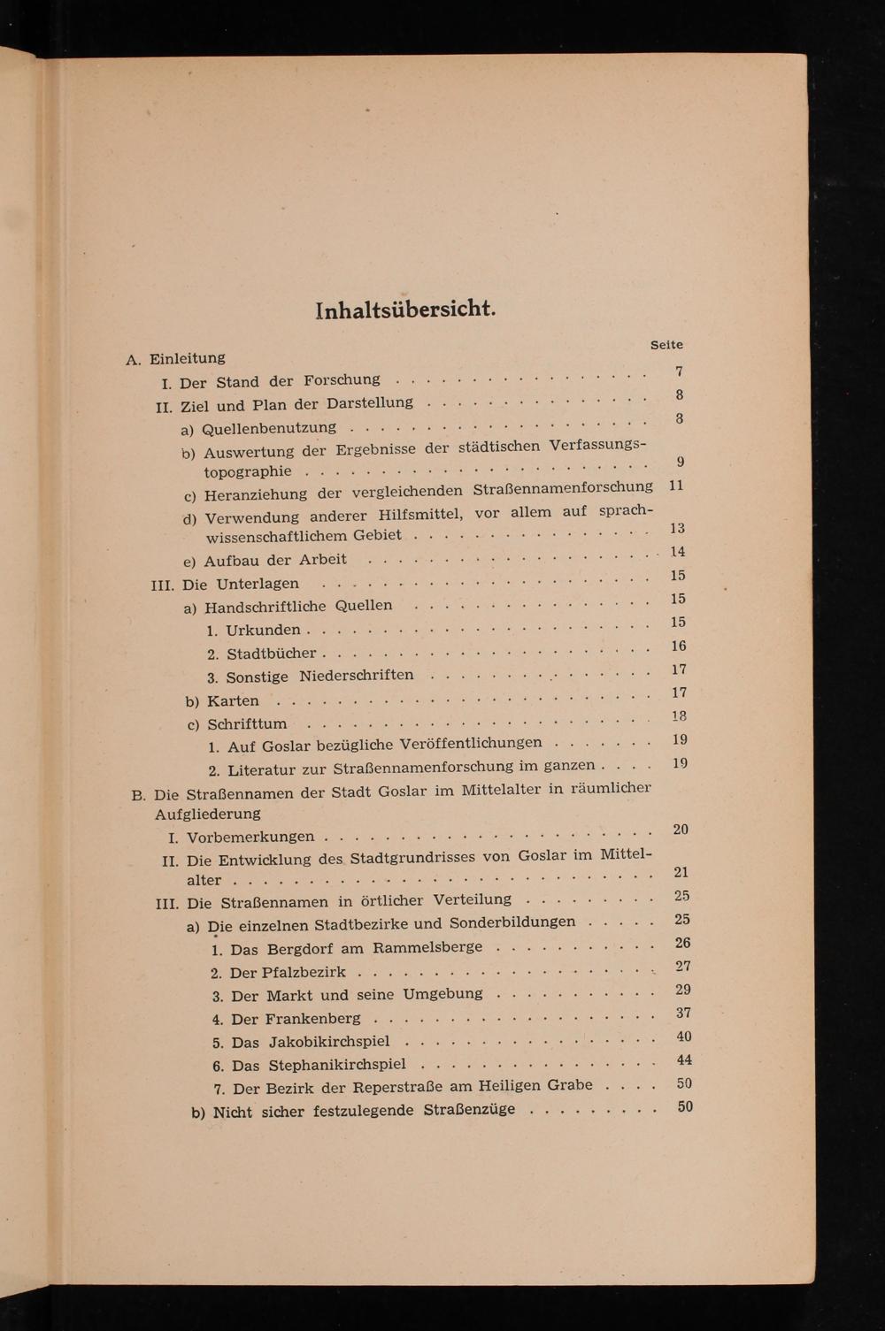 Die Goslarer Straßennamen : ein Beitrag zur städtischen Verfassungstopographie des Mittelalters und zur vergleichenden Straßennamensforschung ; mit einem Stadtplan / von Karl Frölich