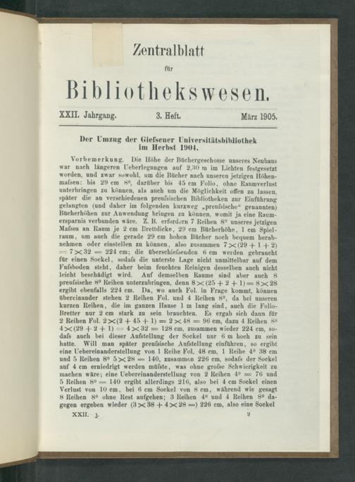 Der Umzug der Giessener Universitätsbibliothek im Herbst 1904