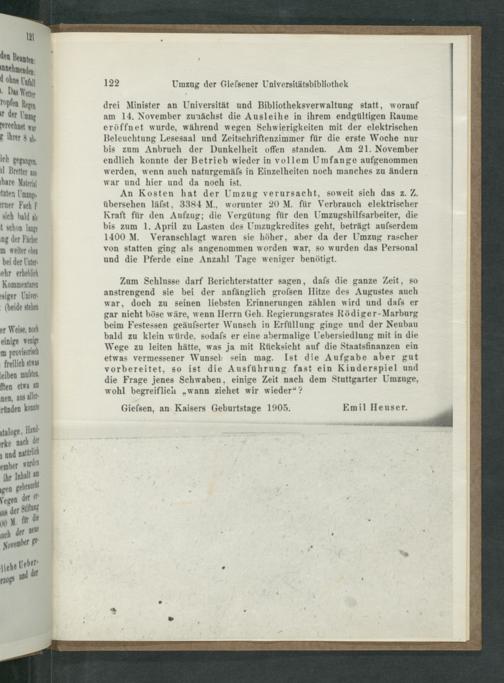 Der Umzug der Giessener Universitätsbibliothek im Herbst 1904 / Emil Heuser