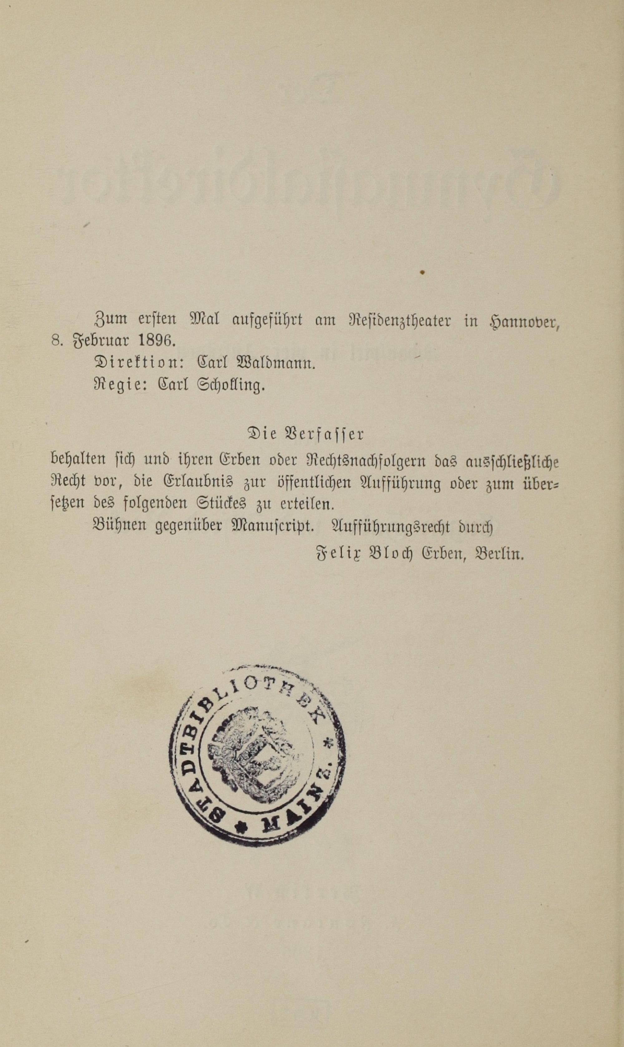 Der Gymnasialdirektor : Schauspiel in vier Aufzügen / von Eugen Zabel und Alfred Bock