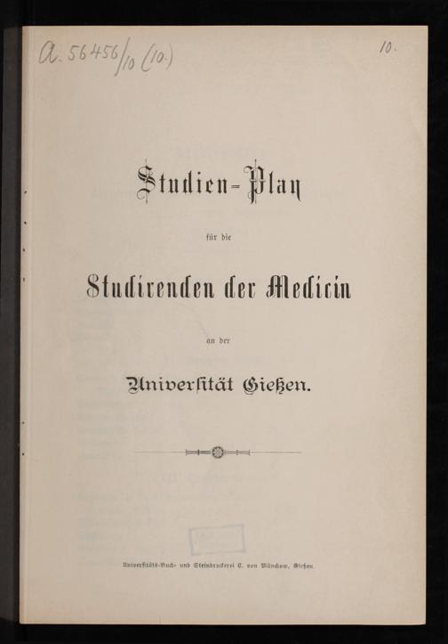 Studien-Plan für Studierende der Medizin an der Landes-Universität Gießen