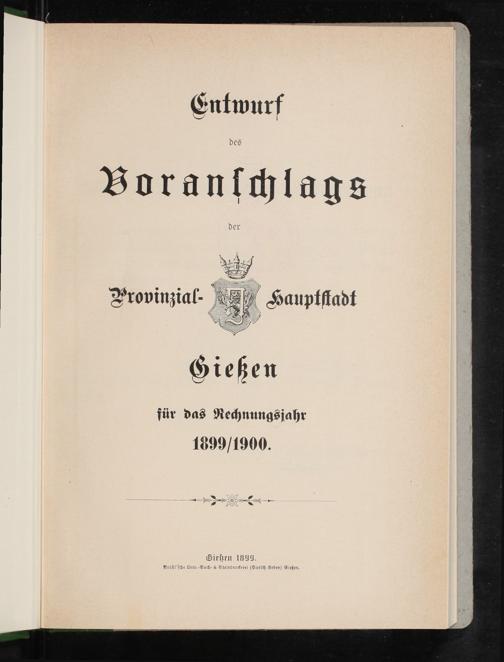 Entwurf des Voranschlags der Provinzial-Hauptstadt Gießen für das Rechnungsjahr ...