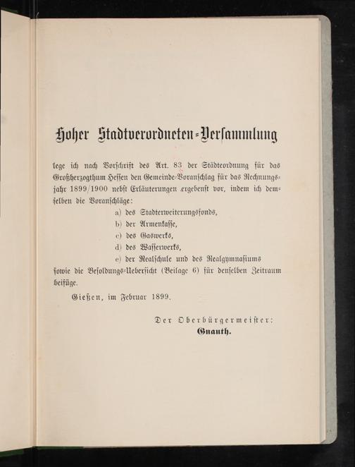 Entwurf des Voranschlags der Provinzial-Hauptstadt Gießen für das Rechnungsjahr ...
