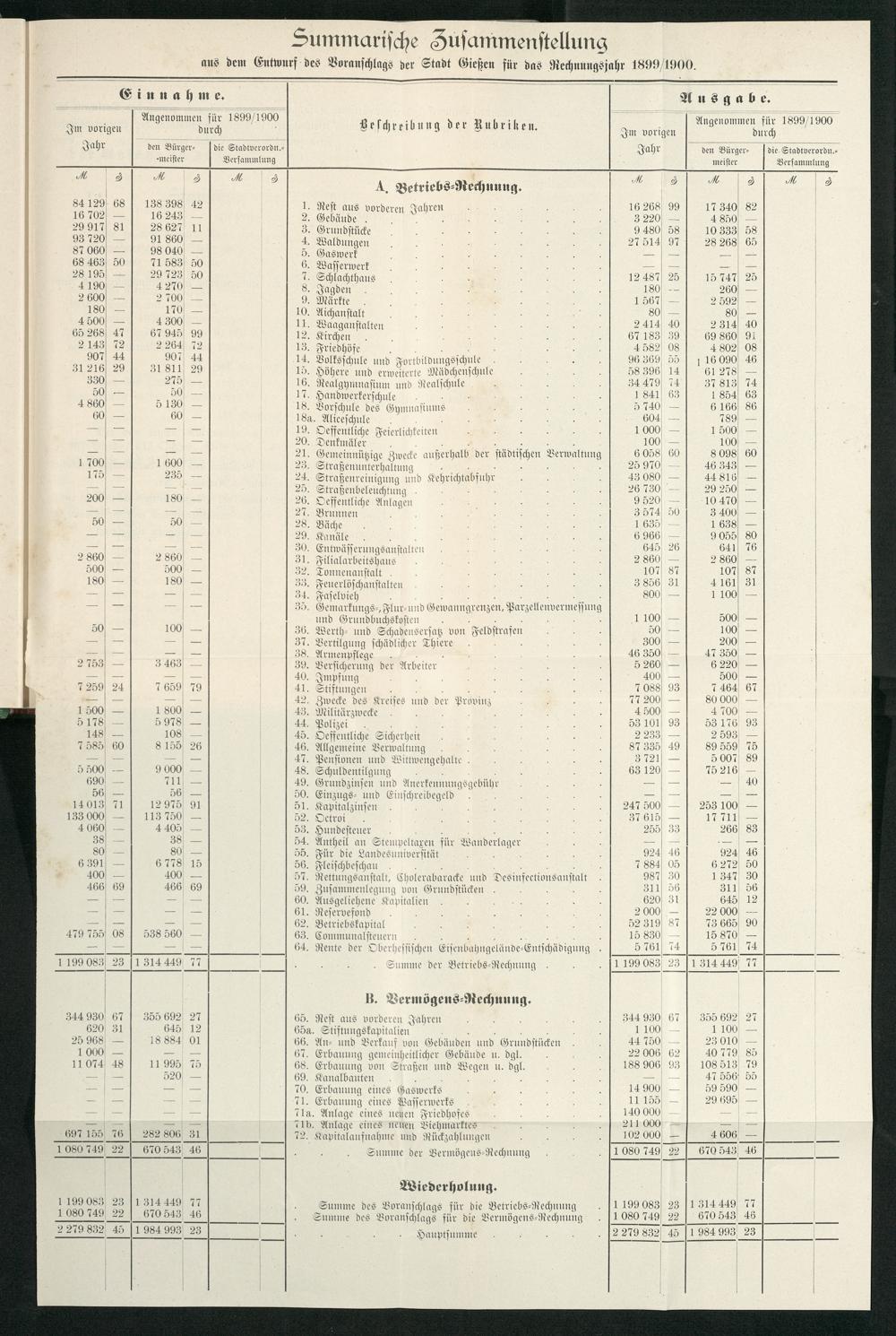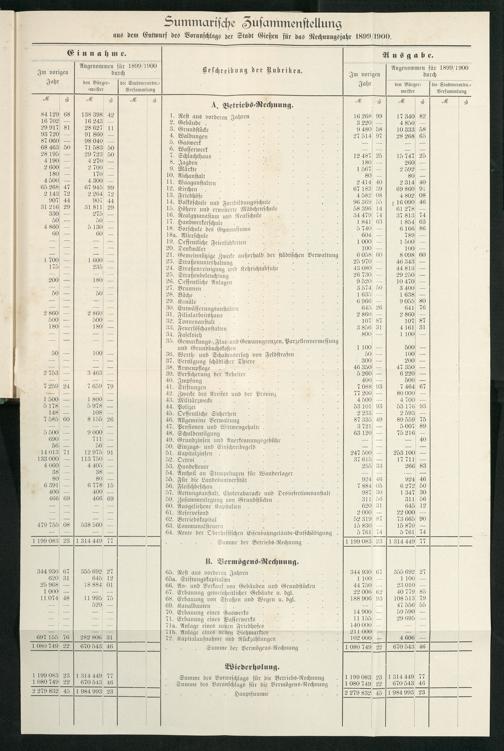 Entwurf des Voranschlags der Provinzial-Hauptstadt Gießen für das Rechnungsjahr ...