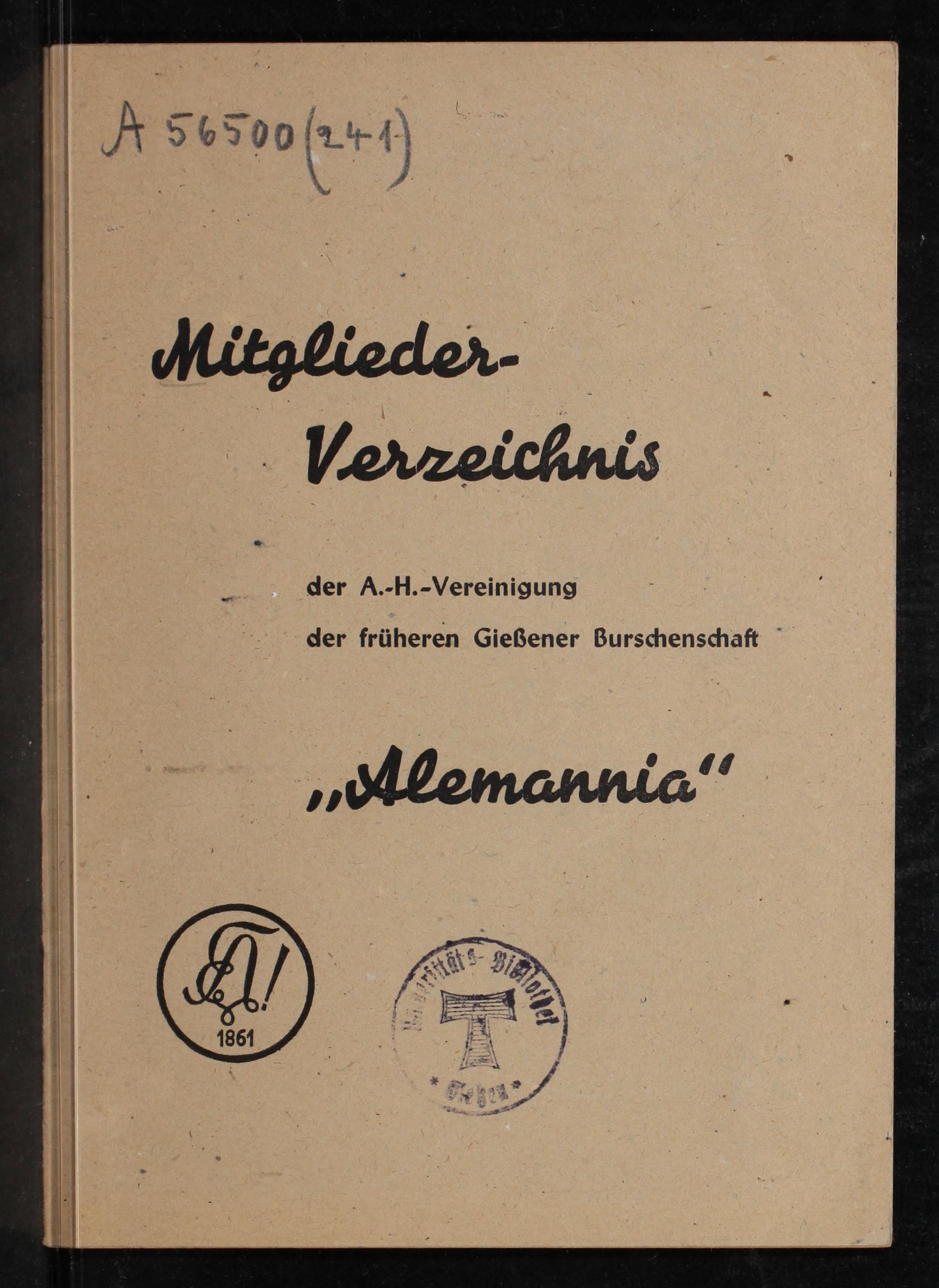 Mitglieder-Verzeichnis der A.-H.-Vereinigung der Gießener Burschenschaft Alemannia zu Gießen