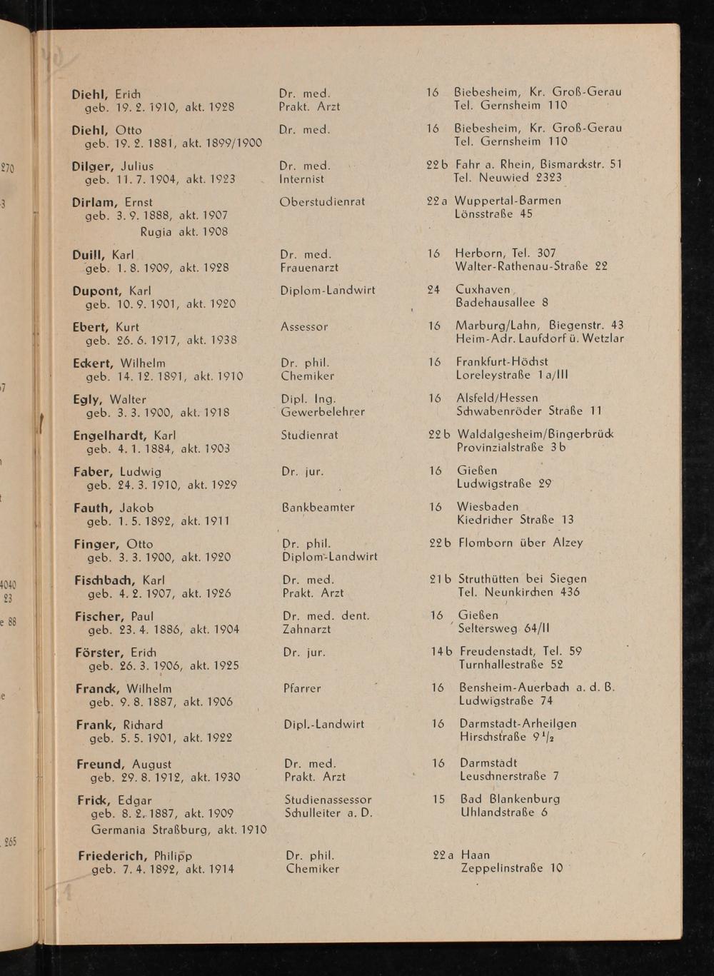 Mitglieder-Verzeichnis der A.-H.-Vereinigung der Gießener Burschenschaft Alemannia zu Gießen