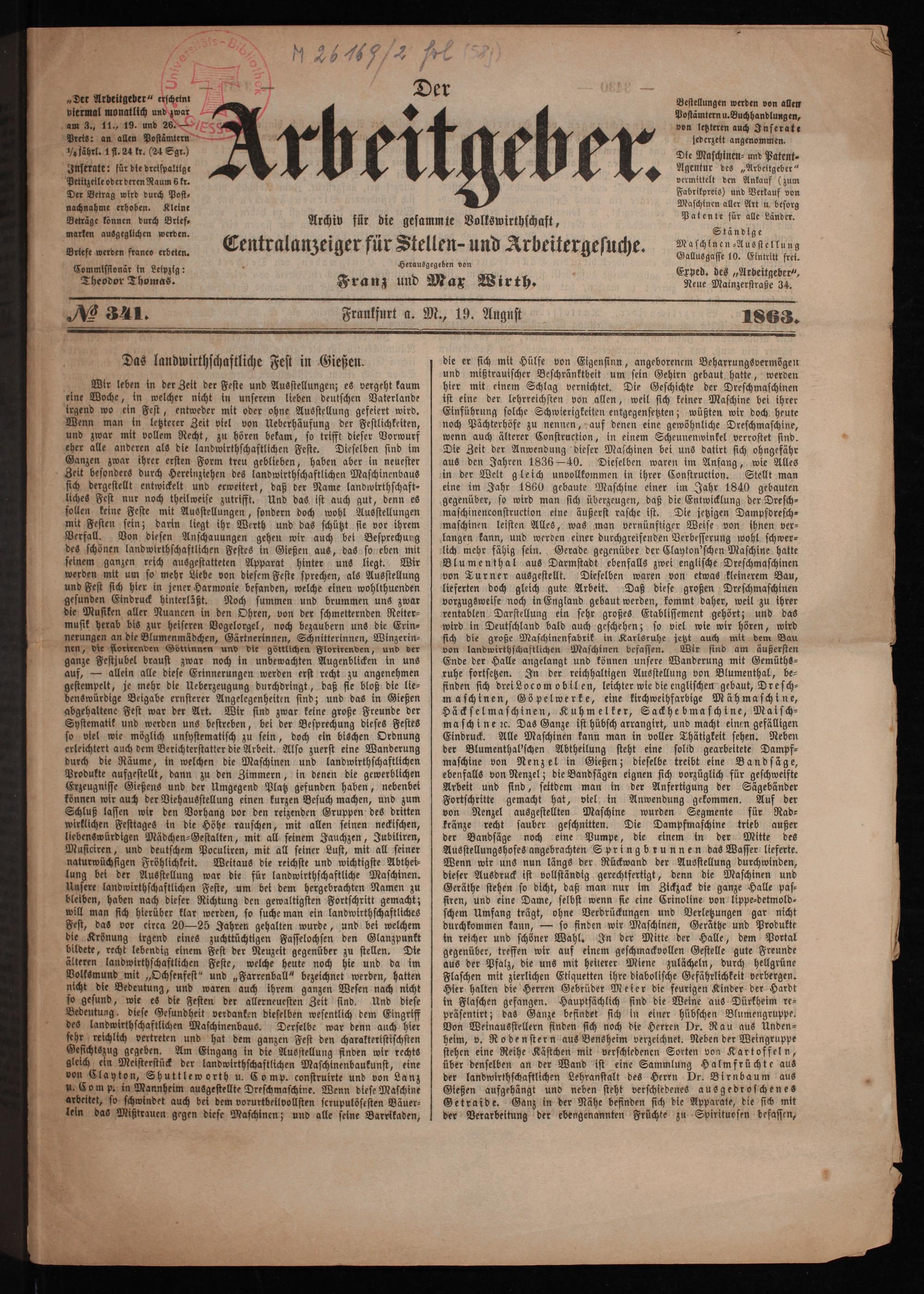 Der Arbeitgeber : Centralorgan für die Arbeiter und Unternehmer aller Stände