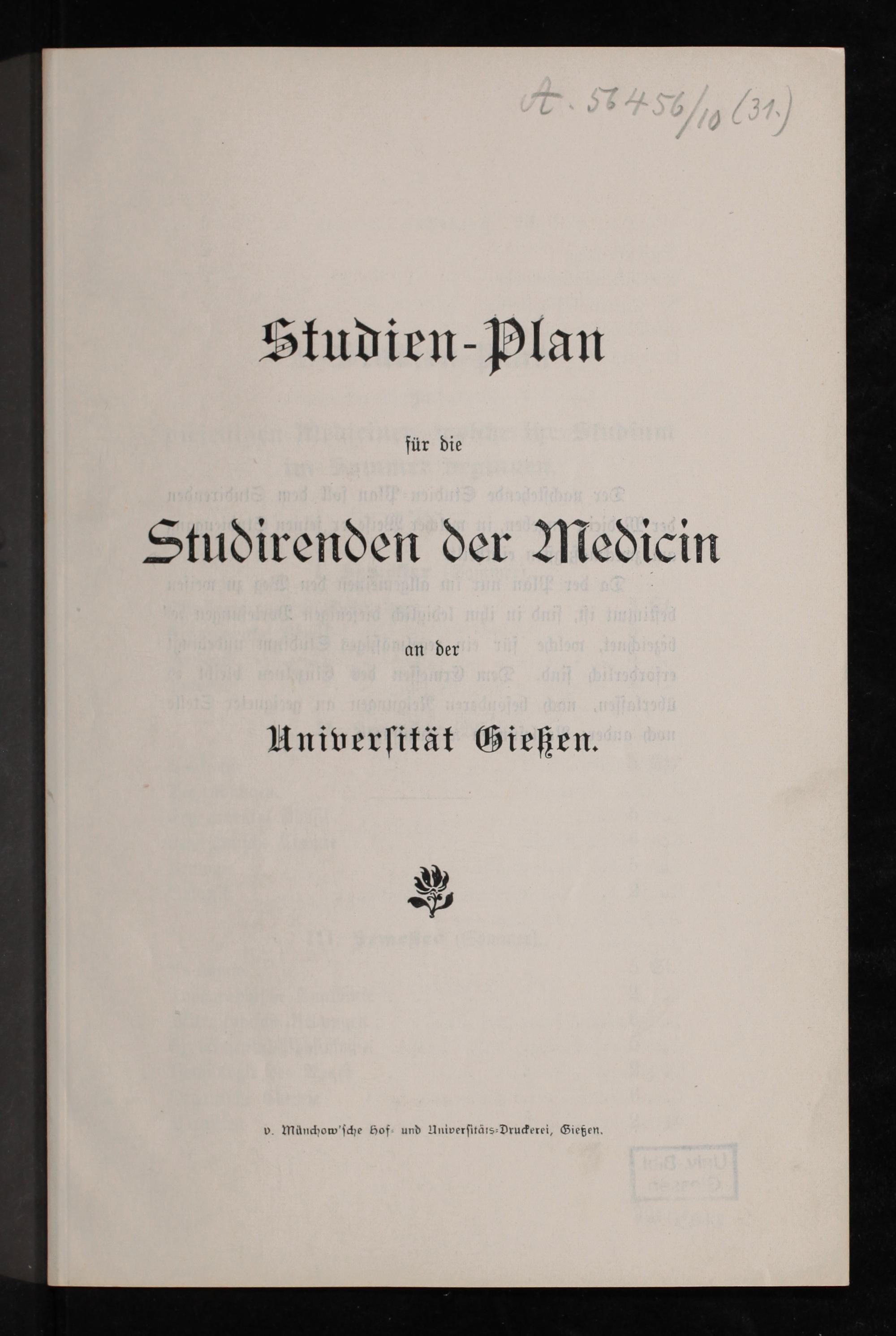 Studien-Plan für Studierende der Medizin an der Landes-Universität Gießen