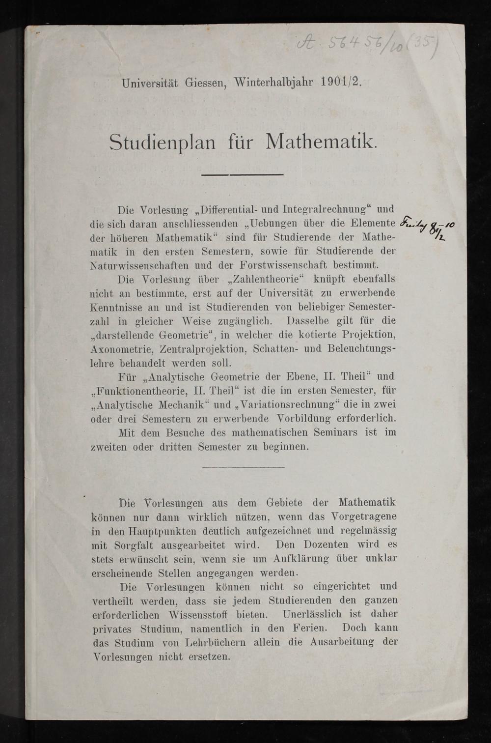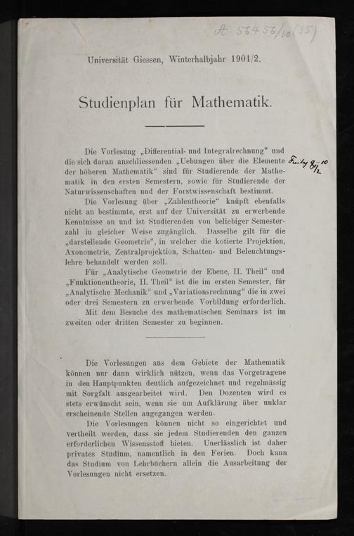 Studienplan für Mathematik / Universität Gießen
