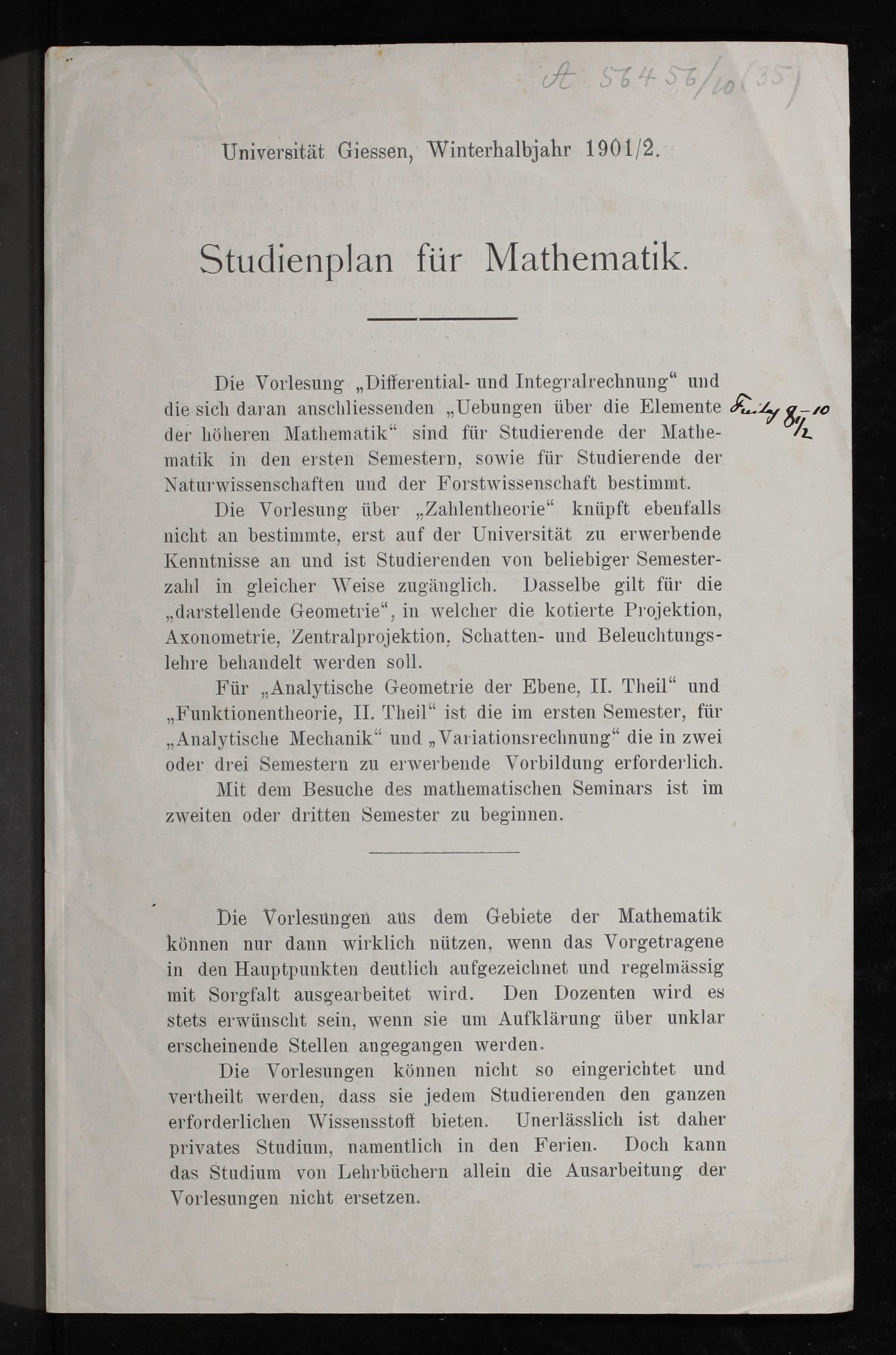 Im Digitalisierungsprozess WS 1901/02; SS 1905 - SS 1910, 1901-1910