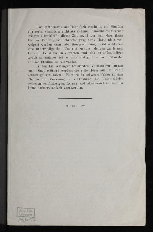 Im Digitalisierungsprozess WS 1901/02; SS 1905 - SS 1910, 1901-1910