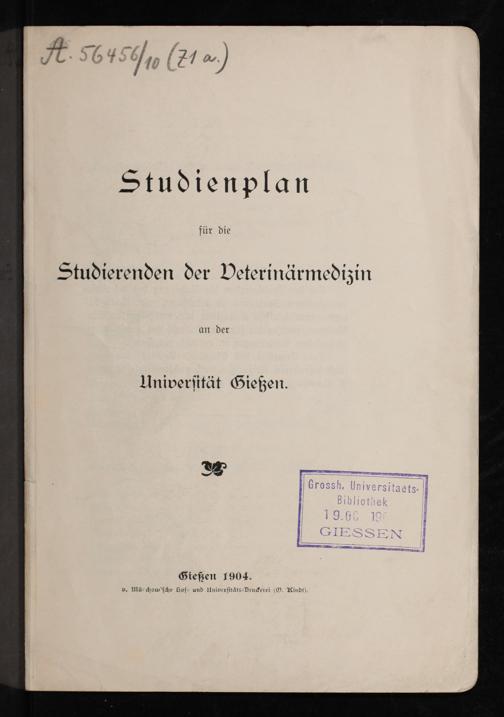 Studienplan für die Studierenden der Veterinärmedizin an der Universität Gießen