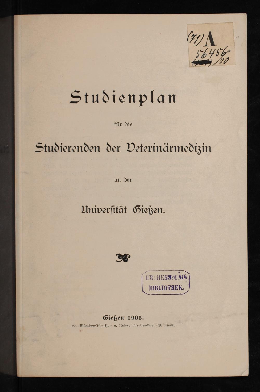 Studienplan für die Studierenden der Veterinärmedizin an der Universität Gießen