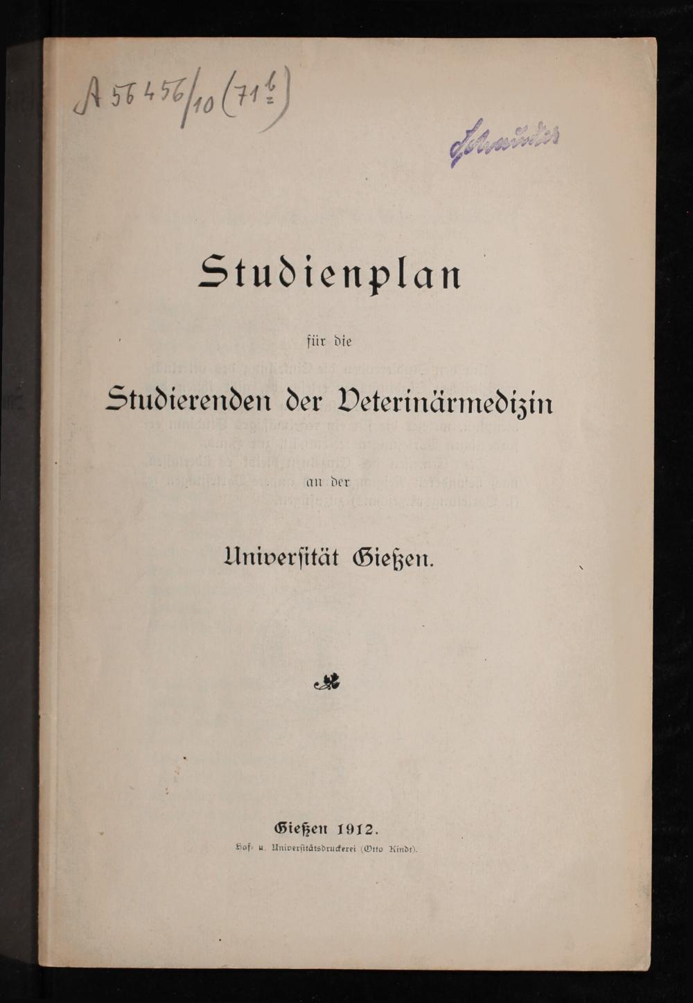 Studienplan für die Studierenden der Veterinärmedizin an der Universität Gießen