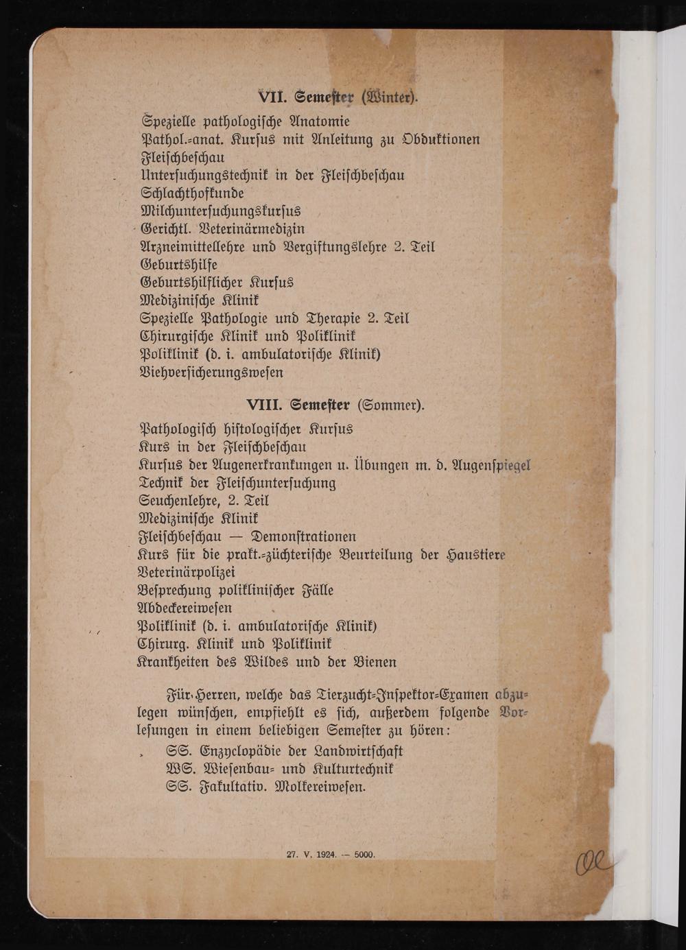 Studienplan für die Studierenden der Veterinärmedizin an der Universität Gießen