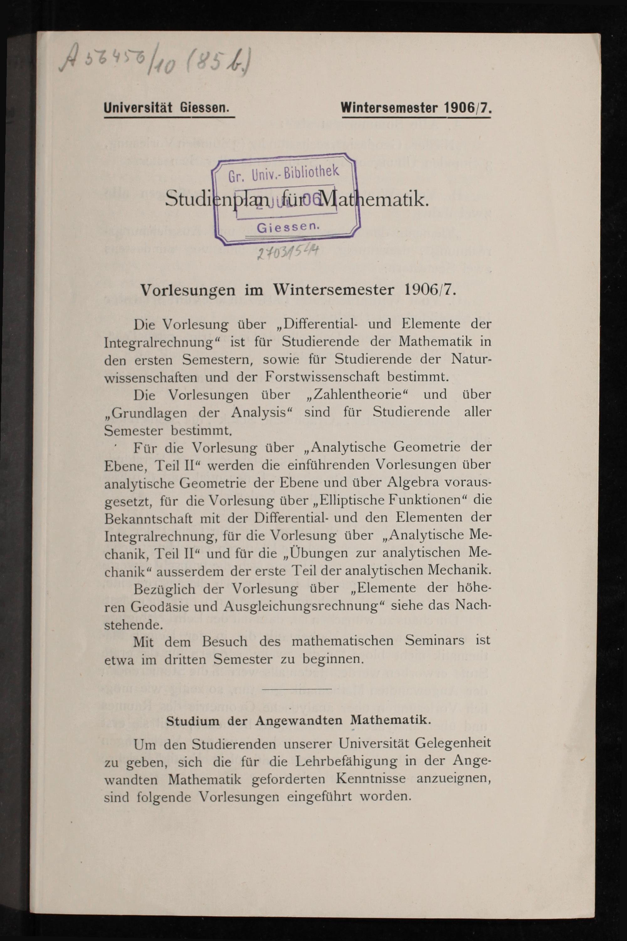 Studienplan für Mathematik