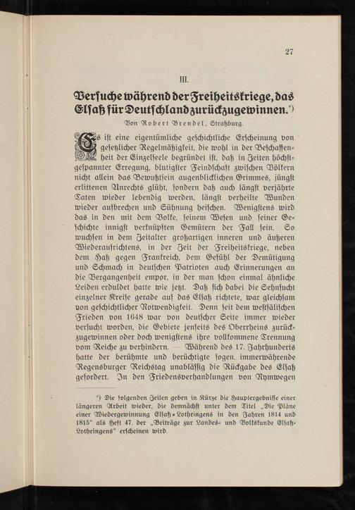 Versuche während der Freiheitskriege, das Elsaß für Deutschland zurückzugewinnen / von Robert Brendel, Straßburg