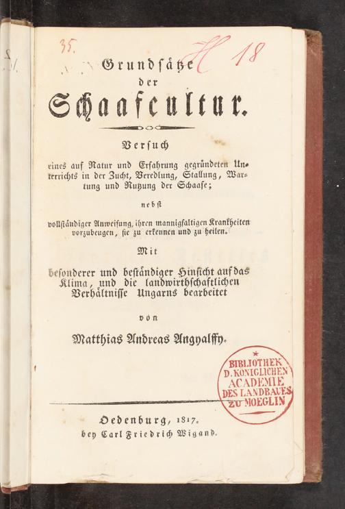 IT BIBLIOTHER D. KÖNIGLICHEN Y ACADEMIE| DES LANDBAUES| ZU MOEGLIN