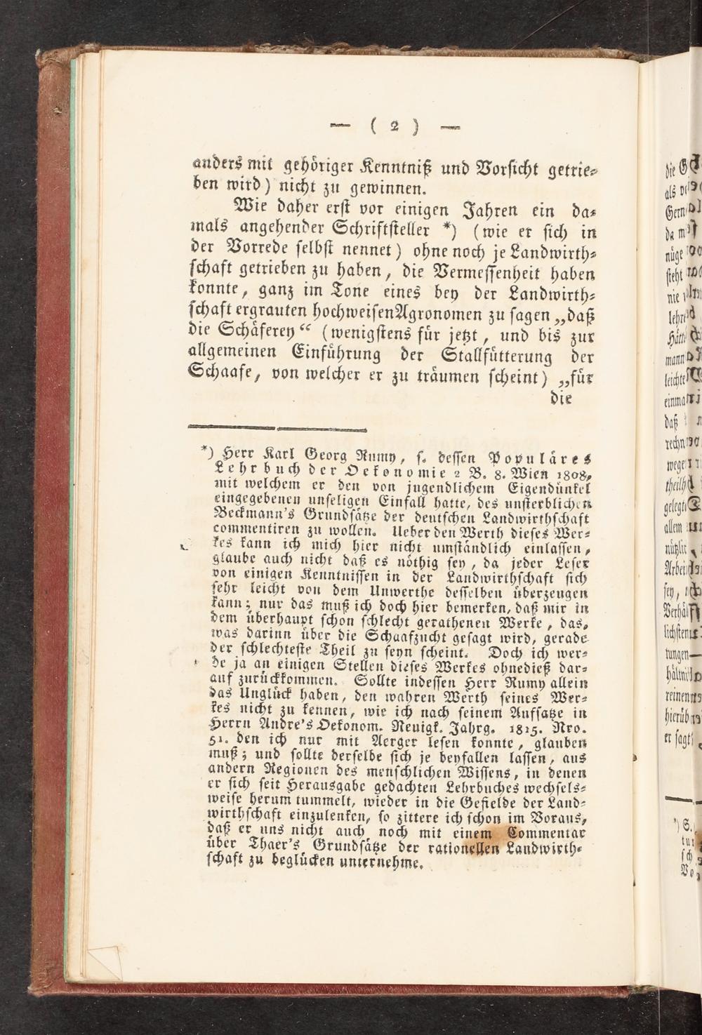 ") Herr Karl Georg Rumy, f. deſſen Populäres Lehrbuch der Oefonomie 2 B, 8. Wien 1808, mit welchem er den von jugendlihem Eigenduünkel eingegebenen unſeligen Einfall hatte, des unſterblicher Be>mann's Grundſäte ver deutſchen Landwirthſchaft commentiren zu wollen. Ueber den Werth dieſes Wer-