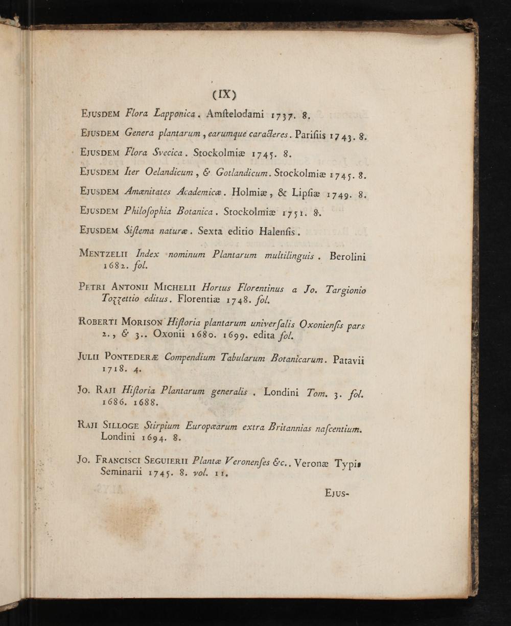 EruspEM lter Oelandicum,&. Gotlandicum. Stockolmie 1 745. 8. EjUsDEM imanitates Academice. Holmie,& Lipfie 1:749. 8. EyUsDEM Philofophia Botanica. Stockolmie rj5r. 8.