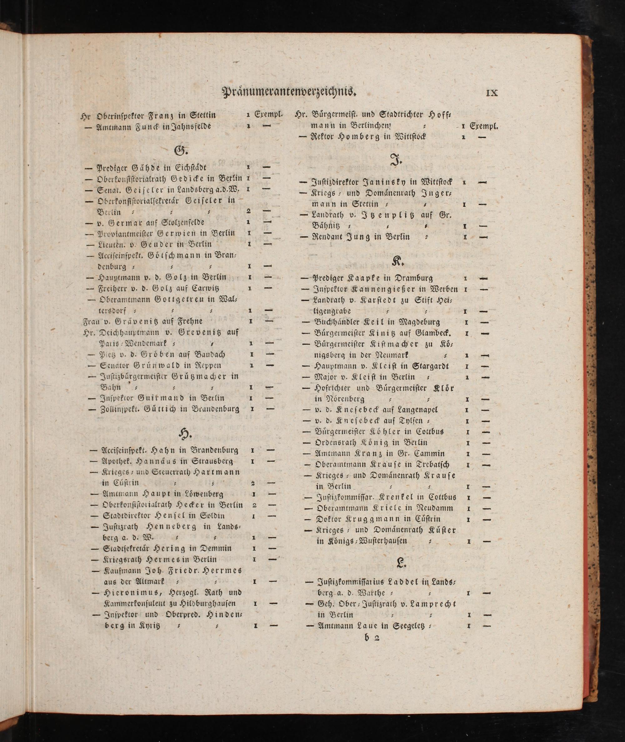 Pränumerantenverzeichnis, IX