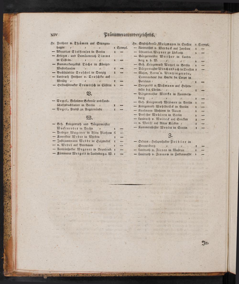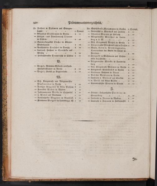XIV Pränumerantenverzeichtnis,