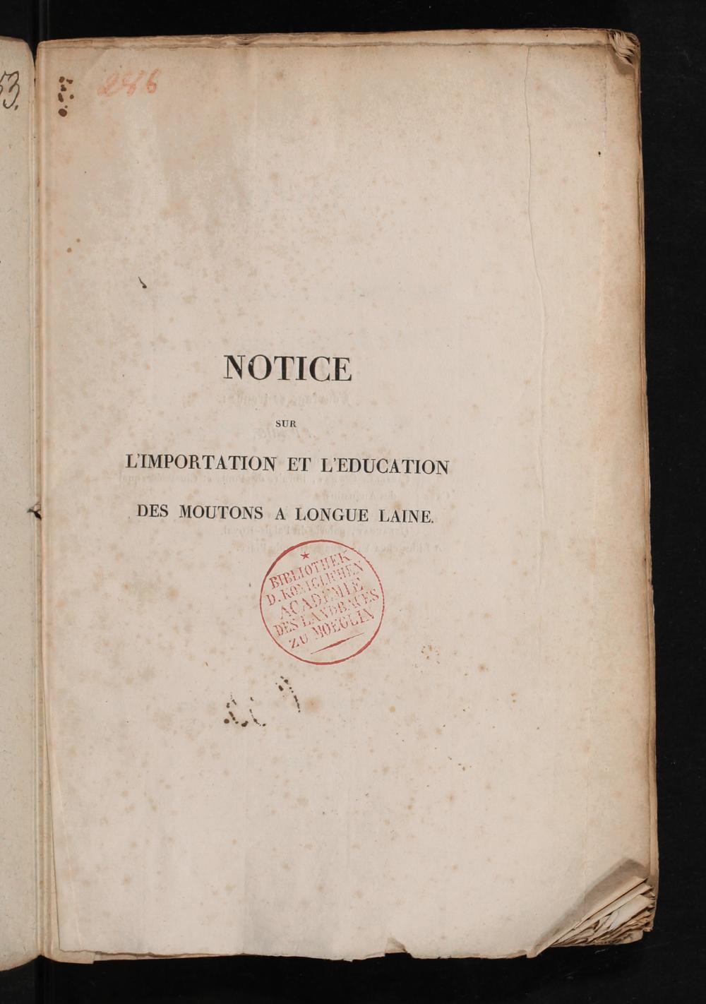 Notice sur l'importation et l'éducation des moutons a longue laine
