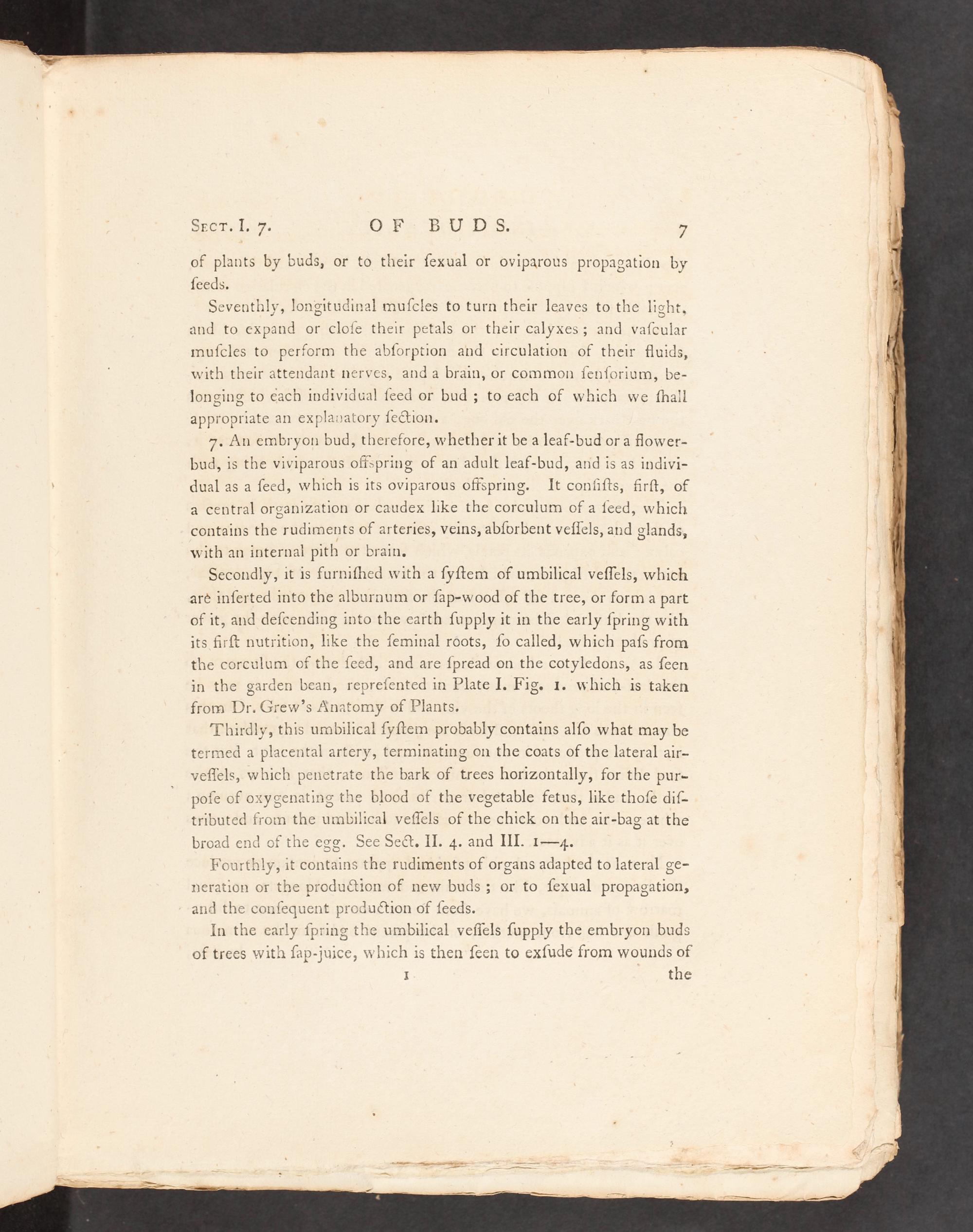 Seventhly, longitudinal mufcles to turn their leaves to the light, and to expand or clofe their petals or their calyxes; and vafcular mufcles to perform the abforption and circulation of their fluids, with their attendant nerves, and a brain, or common fenforium, be- longing to each individual feed or bud; to each of which we fhall appropriate an explauatory feétion.