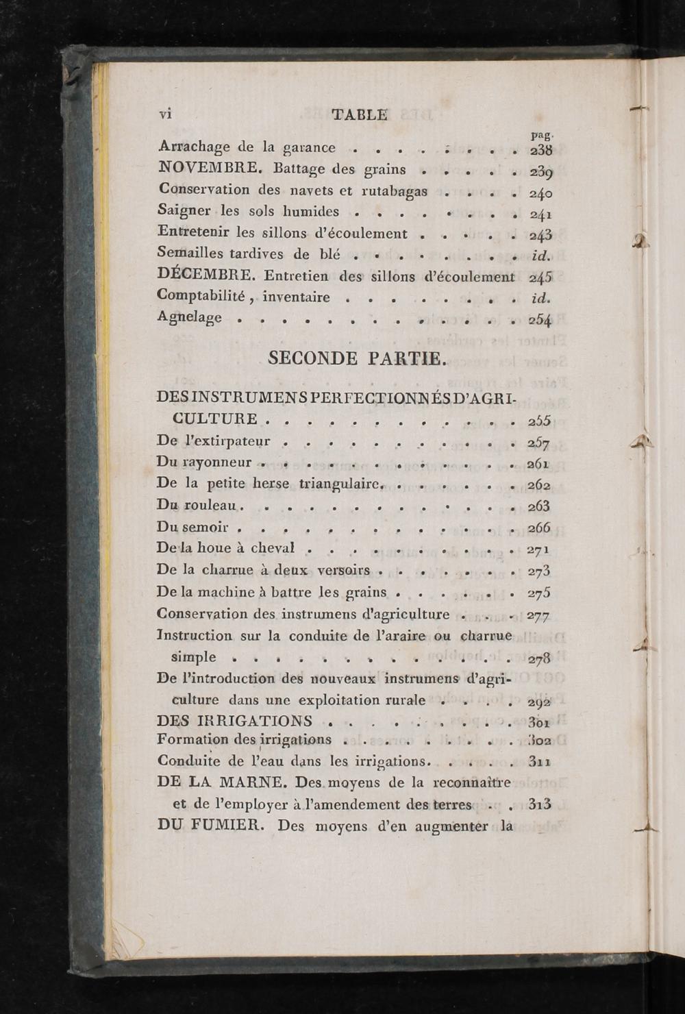 DESINSTRUMENS PERFECTIONNÉSD’AGRI- GP BURE ES TE Dee ro Mit RNEE DaMExtmpateur 0 012 0e Lette DHAVYONNEUT#48 olea mime she ot Rinertorr Wae De la petite-herse, triangulaires,,e);,20, le 1e DRM UlEAU Des ts cri ads nt> DISRMOIE ES 40 re A LU De een te DéNThOne A Cheval 0 726 SR Le De la charrue à. deux, versoirs. le 4e le ee De la machine à battre les grains,..+ ,.):. Conservation des instrumens d'agriculture …. Instruction sur la conduite de l’araire ou charrue Simple à 4 574++ RCI De l'introduction des nouveaux instrumens d’agri-