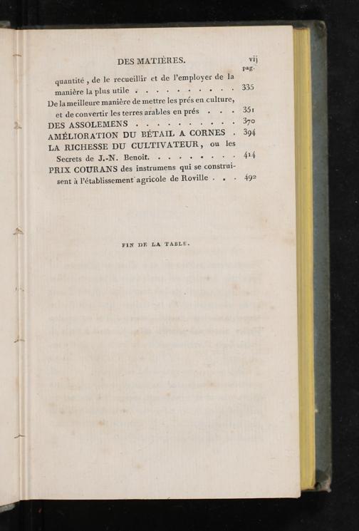 quantité, de le recueillir et de l’employer de la manrére la plusutile 4).++.) De la meilleure manière de mettre les prés en culture, et de convertir les terres arables en prés: DES ASSOLEMENS.. cite AMÉLIORATION DU BÉTAIL nt CORNES LA RICHESSE DU CULTIVATEUR, ou les Secrets de J.-N. Benoît...+*+: PRIX COURANS des instrumens qui se construi- sent à l'établissement agricole de Roville..