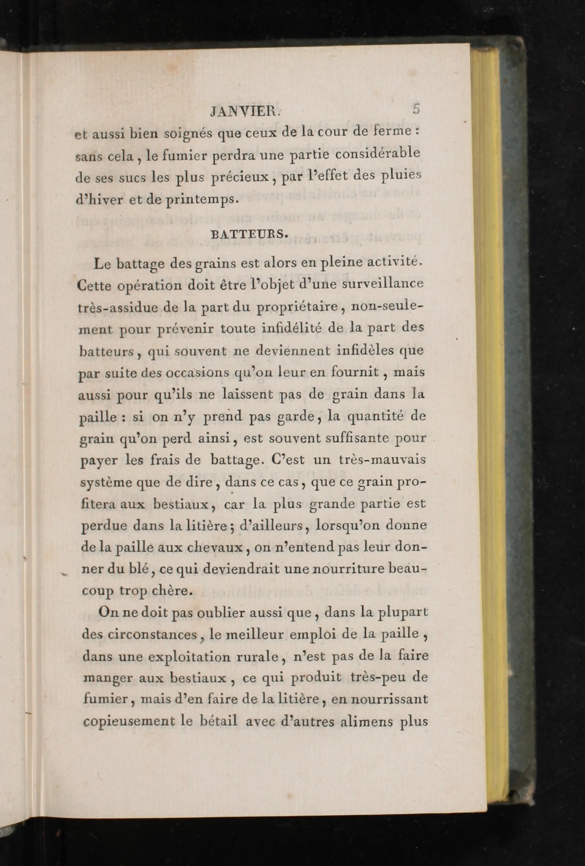 JANVIER. et aussi bien soignés que ceux de la cour de ferme: sans cela, le fumier perdra une partie considérable de ses sucs les plus précieux, par l'effet des pluies
