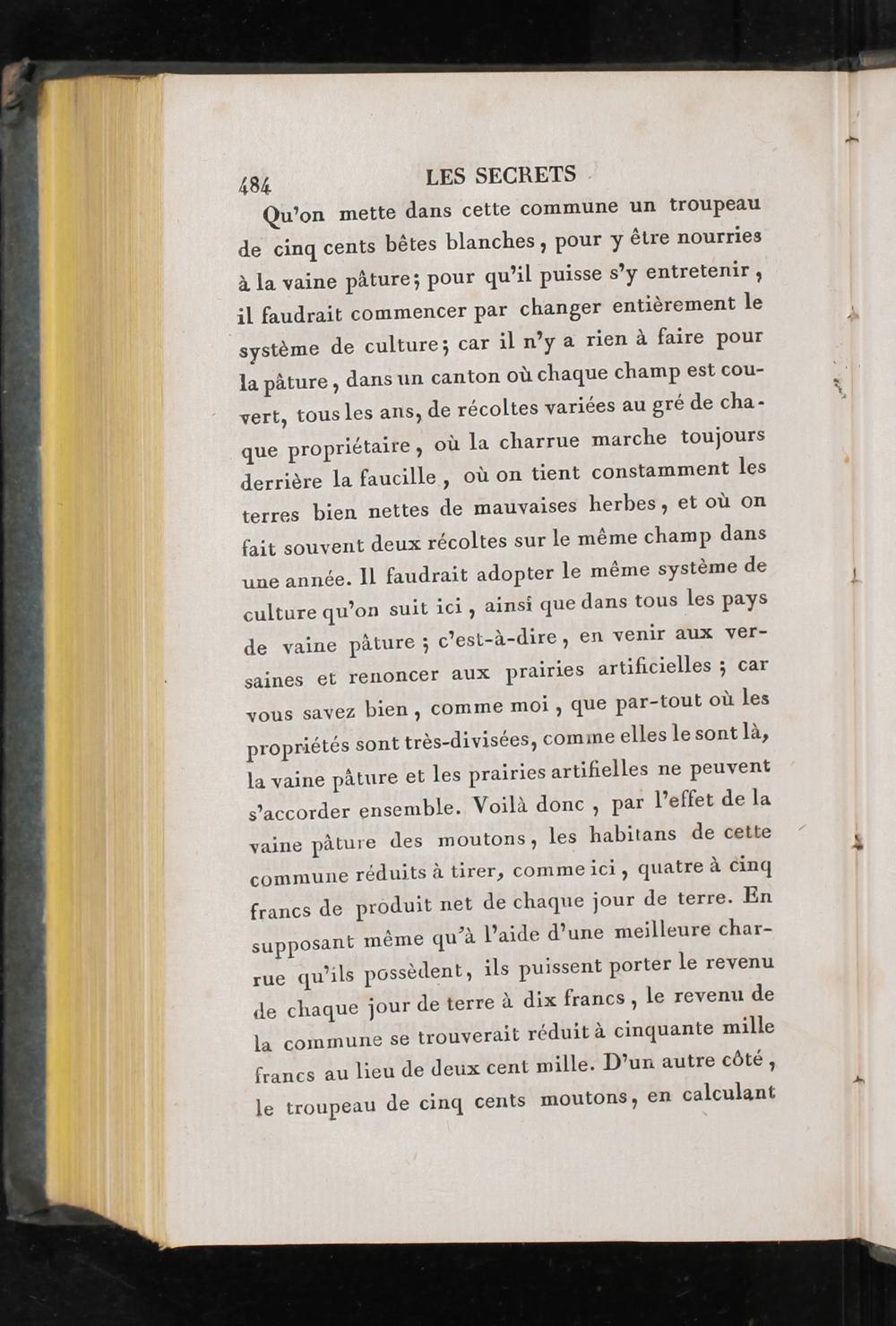 s’accorder ensemble. Voilà donc, par l'effet de la vaine pâture des moutons; les habitans de cette commune réduits à tirer, commeici, quatre à cinq francs de produit net de chaque jour de terre. En