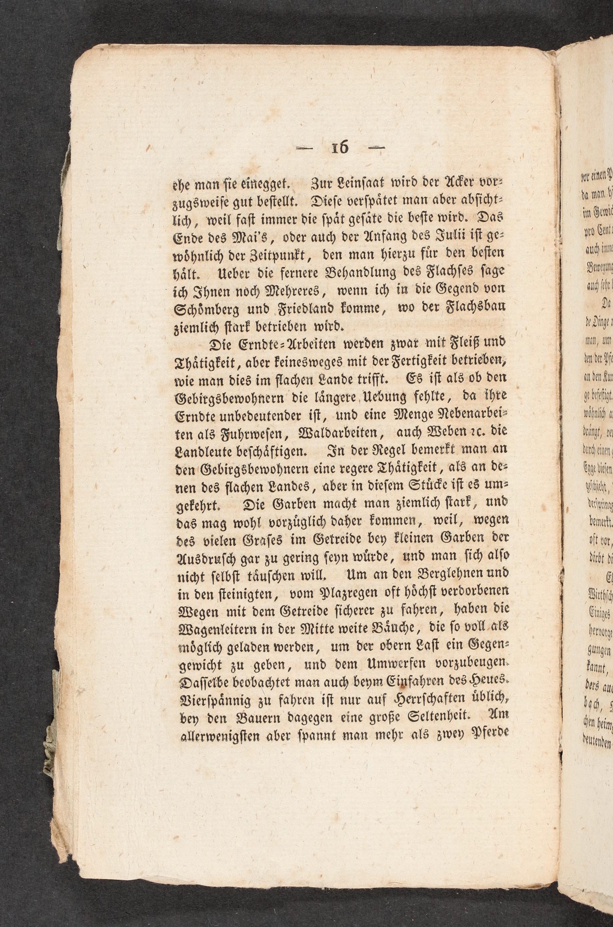 ehe man ſie einegget. Zur Leinſaat wird der Aer vor? zugsweife gut beſtellt. Dieſe verſpätet man aber abſicht- lich, weil faſt immer die ſpät geſäte die beſte wird. Das Ende des Mai's, oder auch der Anfang des Julii iſt ge- wöhnlich der Zeitpunkt, den man hierzu für den beſten hält. Ueber die fernere Behandlung des Flachſes ſage ich Ihnen ndc<h Mehreres, wenn ich in die Gegend von Schömberg und Friedland komme, wo der Flachsbau ziemlich ſtark betrieben wird.