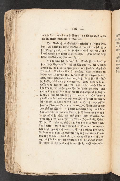 Ein anderer ſehr bedeutender Markt für landwirth- ſchaftliche Erzeugniſſe, iſt der Wollmarkt, der jährlich zweymal, nämlich im Frühjahre und Herbſte abgehal- ten wird. Was an ihm in merkantiliſcher Hinſicht zu