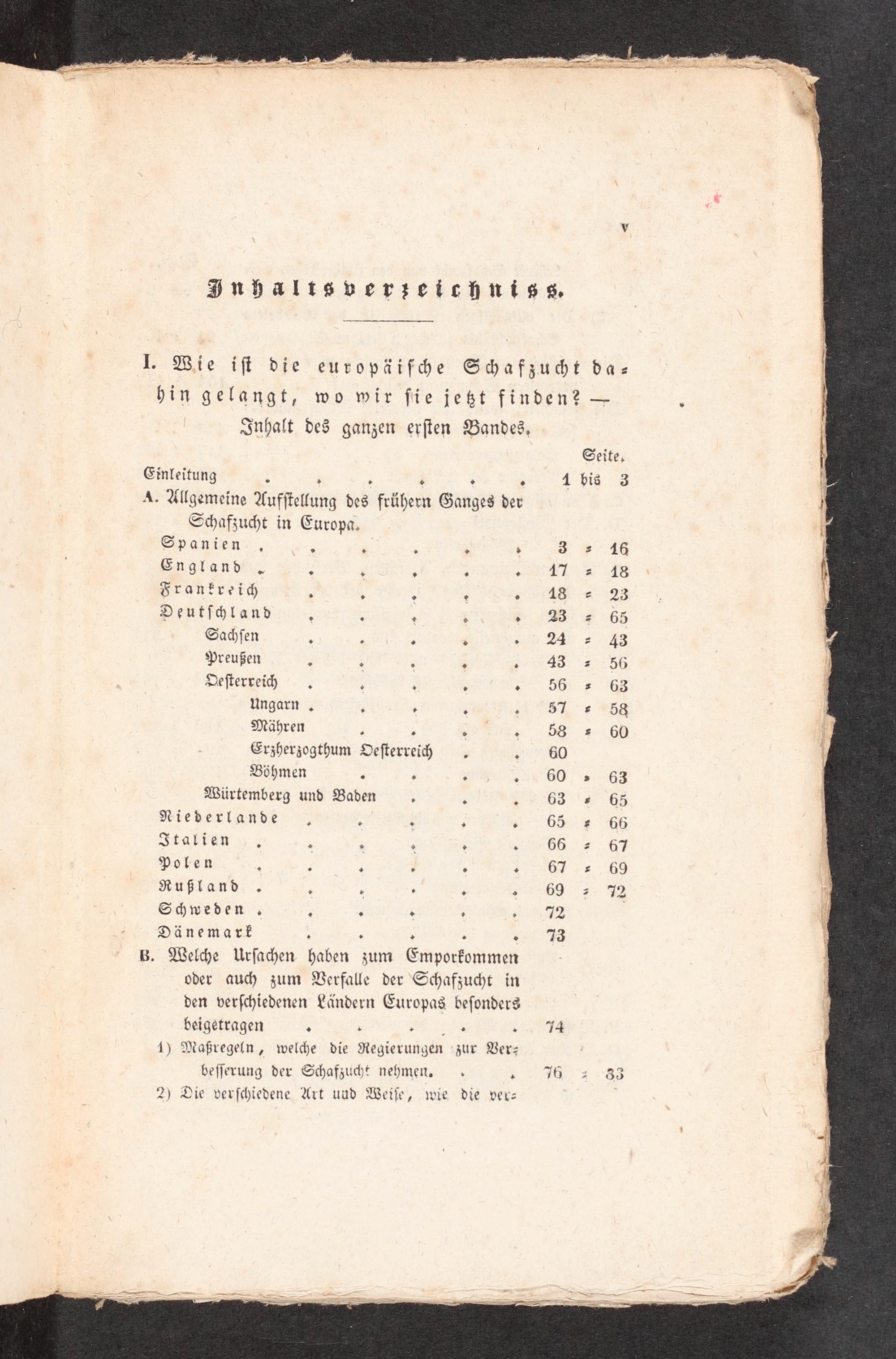 Seite, Einleitung T 8 4 bis 3 A. Ullgemeine Aufſtellung des Fele Ganges der Schafzucht in Europa, Spanien,. 8. v N N 2: 5-46 England“.. 4-. we 1426.48