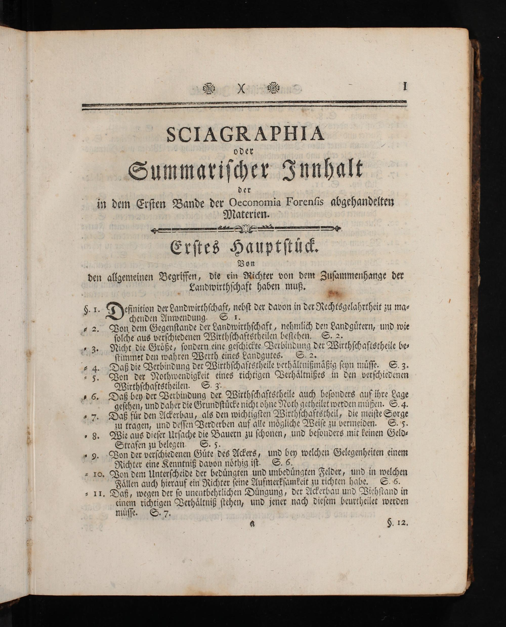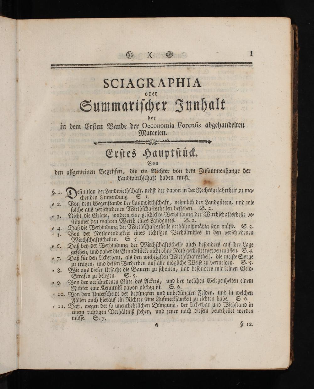 in dem Erſten Bande der Oeconomia Forenlis abgehandelten Materien.