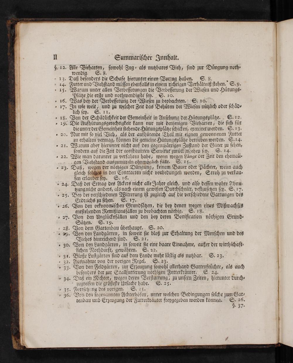 - 15. Warum unter allen Verbeſſerungen die Werbeſſerung der Wieſen und Hütungs- Pläße die erſte und nothwendigſte ſey. S. 10. IE