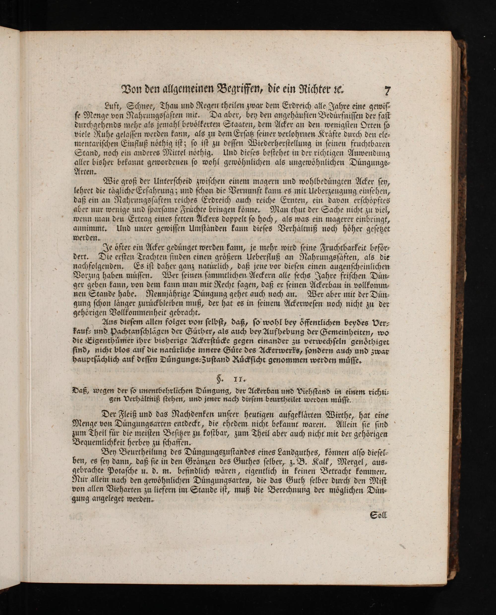 Aus dieſem allen folget vow ſelbſt, das, ſo wohl bey öffentlichen beydes Ver- kauf- und Pachtanſchlägen der Guürber, als auch bey Aufhebung der Gemeinheiten, wo die Eigenthümer ihre bisherige N&erſtü>ke gegen einander zu verwechſeln genötbiget find, nicht blos auf die natürliche innere Güte des AFXerwerks, ſondern auch und 3wax hauptſächlich auf deſſen Düngungs-Zuſtand RyFſicht genommen werden müſſe.