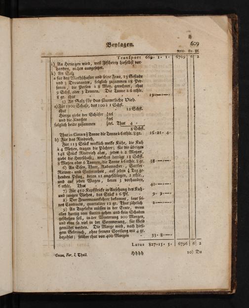 Hierzu giebt der Schäfer„ztel und die=Knechte Ztel 6 folglich beide zuſammen Atel."Te.4.2...2 -- 8 Sc<hfl. Thutia-Circa23 Tonne die Tonnea 6 rthlr. 8 gr. b) Für das Rindvieh,- ISE Für 113 Stü>k wirklich melke Kühe, die Kuh a 4 Meßen, 148 Stüc Rindvieh aber, zjedes"ä 2:Meßen, giebt die Herrſchaft welches beträgt 18 S<fl. gs Meßen.oder.6 Tonnenydie Tonne ä6-thlr. 8 gr. | 6) An Eiſen, Theer, Rademacher-, Sattler- - Riemex- und Seilerarbeit, auf jeden 5 Tag 92- henden.Pflug, deren 1x.angeſchlagen, 2.rthir., „und auf jeden Wagen, deren 3 vorhanden, 6 eehle. Thut..- EEE-- 7) Für 450 Kopfſtricke in Anſehung des Kuh- und jungen Viehes, das Stü 2 6-Pf.-