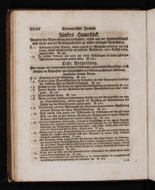 4 EIE Erſte. Abtheilung. | Von einigen aus landwirthſchaftlichen Erfahrungen geſammleten Grundſäßen, naß velchen.die Nüklichkeit oder Schädlichkeit der Güterverpachmngen überhaupt beurtheilet werden können, 6: 3. Einleitung'in dieſe Abtheilung: S. 395« * 4. Daß die eigene Bewirthſchaftung der Landgüter, die beſte Nutßungsart derſelben ſey, beſtätiget ſchon die tägliche Erfahrung. S- 395- Urſache von den Wortheilen der eigenen Bewirthſchaftung der Landgüter. S. 397- , Zweyte Urſache, von den Vortheilen der eigenen Bewirthſchaftung eines Land- gutes. S. 398-' „"Dritte Urſache davon. S.- 399. Eierte von dem Aerbau hergenomtnene Urſache von der Vorzüglichkeit der eige nen Bewirthſchaftung, wobey zugleich ein Vorſchlag zur Aufmunterung des BÜ Sleißes bey den Admuniſtraforen gethan wird. S- 409. PIS |! s 9. Noch fernere von dem GWieſewachs und Gartenbau hergenommen Ausführung von dem Vorzuge der eignen Bewirthſchaftung. S- 4091- - 10. Daß endlich auch wegen“ des Mißbrauchs der Fiſchereyen und'der auf einem Gute von Zeit zu Zeit nöthigen Bauten und Reparaturen die eigene Bewirth- ſ)aftung eines Landgutes vor andern rathſam ſey. S-. 402. x159 Von den verſchiedeuen Hinderniſſen, wodurch die Eigenthümer an der eigenen Bewirth?- ſchaffung ihrer Landgüter verhindert werden, wobey beſonders der den, Minderjährigen,- Unſinnigen und Wahnwißigen zugehörigen Güter, auch ſolcher, welche unter einen Con- curs oder Liquidations-Proceß ſtehen, gedacht wird. S- 493+;); - 12, Warum auch die eigene Bewirthſchaftung. der Landgüter nicht für das weiblich“Geſchlecht rathſam ſey, welches aber vennoch nicht ohne Ausnahme iſt, wovon einige berühinte