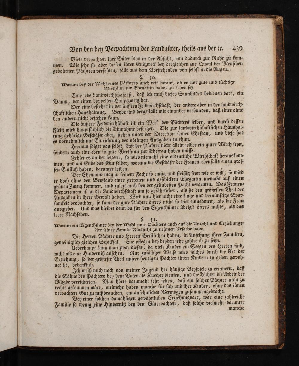 Fehlet es an der leztern, ſo wird niemahl eine ordentliche Wirchſchaft herausfom- inen, und am Ende das Gut ſelber, worinn die Geſchäft? der Frauen. ebenfalls einen groſ- ſen Einfluß haben, darunter leiden.)