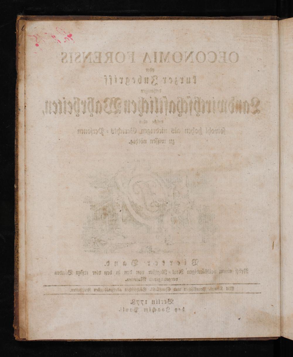 Oeconomia Forensis oder kurzer Inbegriff derjenigen Landwirthschaftlichen Wahrheiten, welche allen sowohl hohen als niedrigen Gerichts-Personen zu wissen nöthig