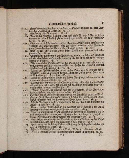 Daß die Alt- und Mittelmärkiſche Lehns- Conſtitution hierunter weit unbe- ſtimmter ſey. S- 48.| 1:? Warum dieſe Obſervanz in der Verbindung, worin das Lehn und Allodium mit einander ſtehet, wirklich nicht ſo unbillig iſt, als ſie es dem erſten Anſehen riach zu ſeyn ſcheinet. S: 49- 1 5- Warum auch die Beſtellungskoſten des Saamens an die Allodiglerben nach dex Obſervanz vergütiget werden müſſen, und ſolches der Billigkeit ebenfalls, ſchlechterdings nicht zuwiderſey- S. 50- ICH