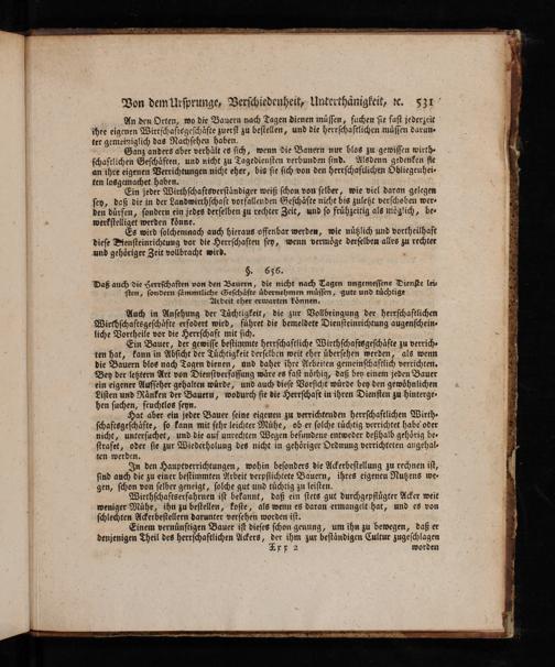6. 656. Daß auch die Zerrſchaften von den Bauern, die nicht nach Tagen ungemeſſene"Dienſte leis ſten, ſondern ſämmtliche Geſchäfte übernehmen müſſen,"gute und tüchtige Arbeit eher:erwarten können,