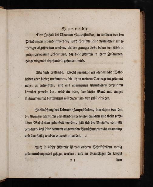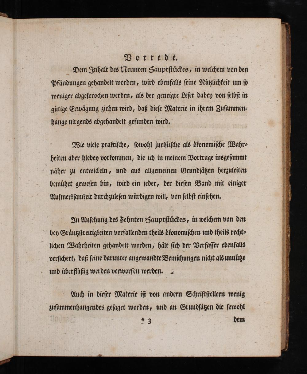 Wie viele praftiſche, ſowohl juriſtiſche als ökonomiſche Wahr- heiten aber hiebey vorkommen, die ich in meinem Vortrage insgeſammt näher zu entwieln, und aus allgemeinen Grundſäßen herzuleiten bemühet geweſen bin, wird ein jeder, der dieſen Band mit einiger Aufmerkſamkeit durchzuleſen würdigen will, von ſelbſt einſehen.