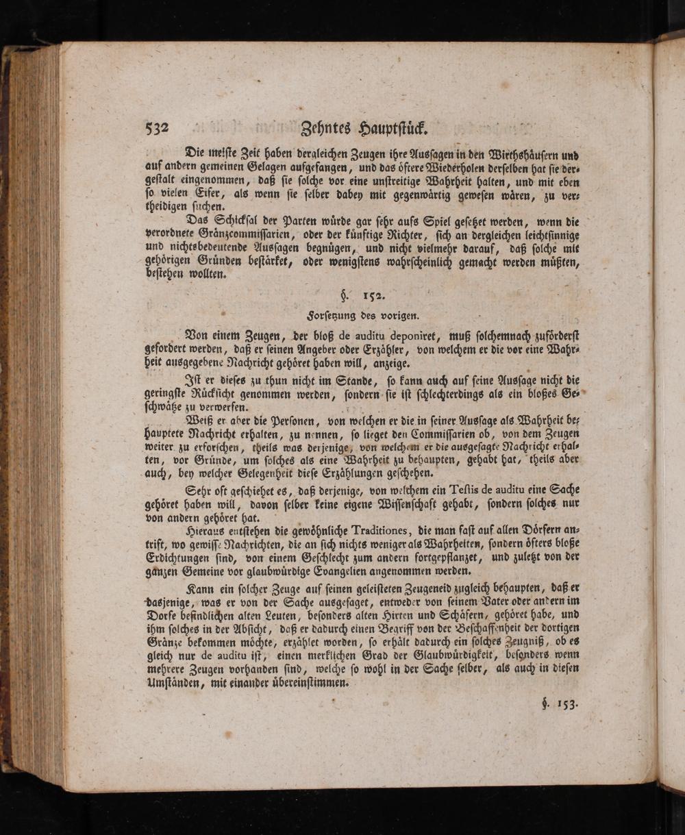 ſchwäße zu verwerfen.-| Weiß er. aber die Perſonen, von welchen er die. in ſeiney Ausſage als Wahrheit bez hauptete Nachricht erhalten, zu nennen, ſo lieget den Commiſſarien ob, von dem Zeugen weiter. zu erforſchen, theils was derjenige; von welchem er die ausgeſagte Nachricht erhal- ten, vor Gründe, um ſolches als eine Wahrheit zu behaupten, gehabt hat, theils aber auch, bey welcher Gelegenheit dieſe Erzählungen geſchehen.