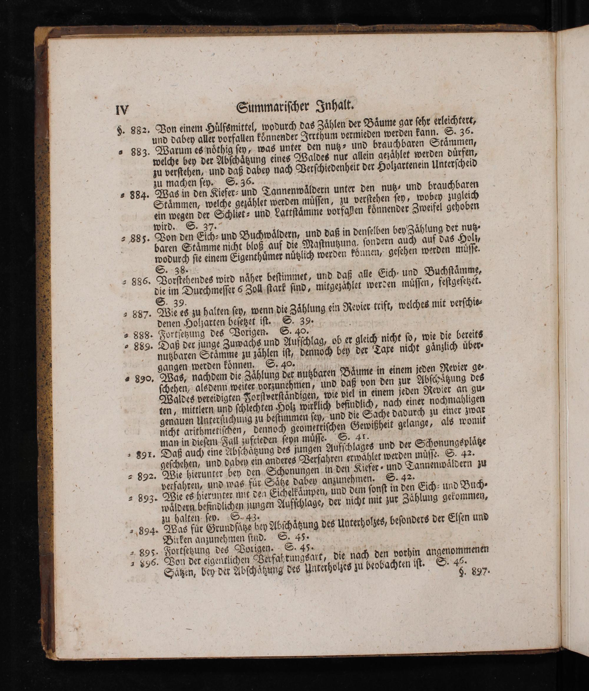 6. 832. Von einem Hülfsmittel, wodurch das Zählen der Bäume gar ſehr erleichtert, und dabey aller vorfallen könnender Irrthum vermieden werden kann. S-« 36- s 883. Warum es:nöthig ſey was unter den nuß und brauchbaren Stämmen, welche bey der Abſchätzung eines GPBaldes nur allein gezählet werden dürfen, zu verſtehen, und daß dabey nach Verſchiedenheit der Holzartenein Unterſcheid