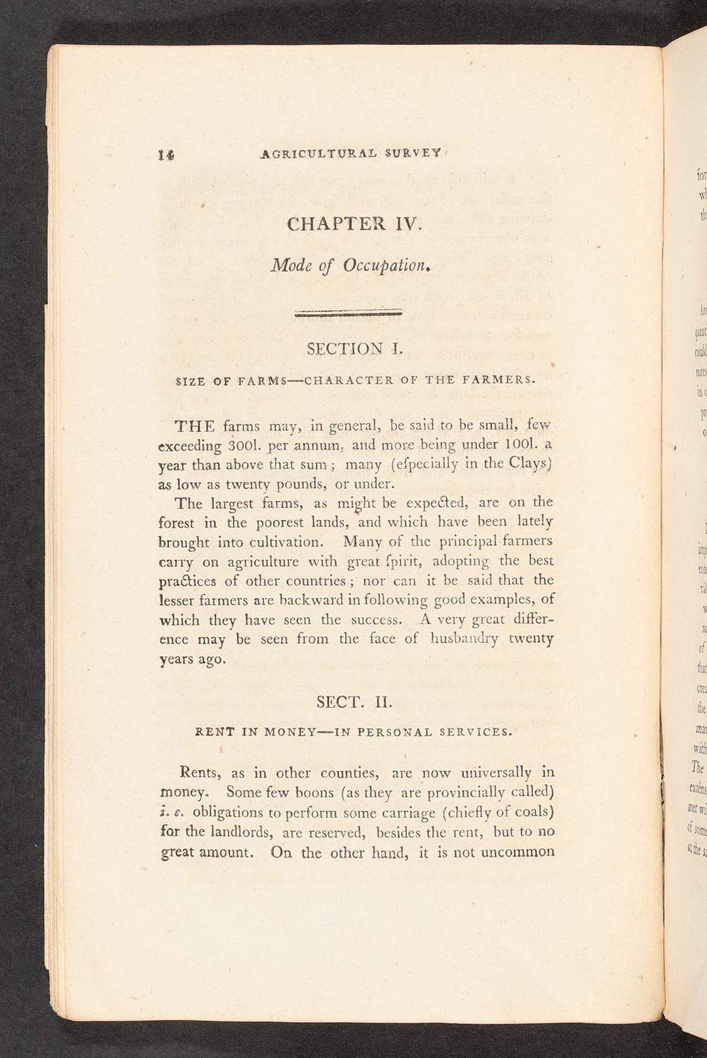 Rents, as in other counties, are now universally in money. Some few boons(as they are proyincially called) a.€. obligations to perform some carriage(chiefly of coals) for the landlords, are reserved, besides the rent, but to no great amount. On the other hand, it is not uncommon