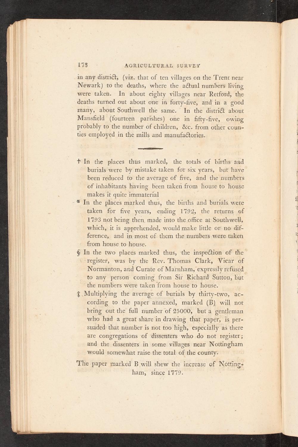 * In the places marked thus, the births and burials were taken for five years, ending 1792, the returns of 1793 not being then made into the office at Southwell, which, it is apprehended, would make little or no dif- ference, and in most of them the numbers were taken from house to house.