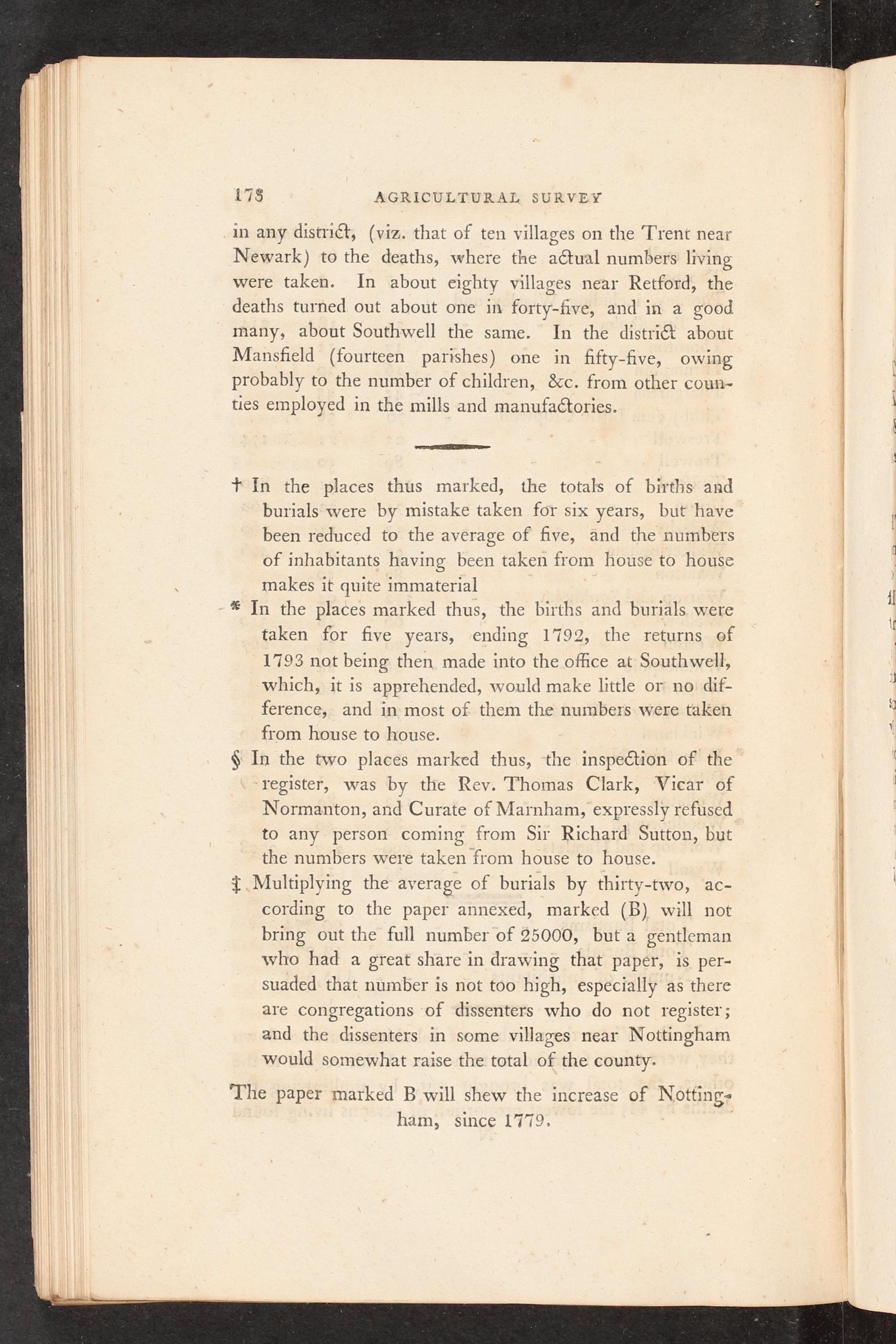 {Multiplying the average of burials by thirty-two, ac- cording to the paper annexed, marked(B) will not bring out the full number of 25000, but a gentleman who had a great share in drawing that paper, is per- suaded that number is not too high, especially as there are congregations of dissenters who do not register; and the dissenters in some villages near Nottingham would somewhat raise the total of the county.